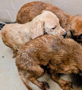 These 3 puppies were found abandoned in DEPLORABLE conditions. Their coats were caked with feces and urine, and they smelled horribly. They clearly had been neglected for a long time. Even after three baths, they are still oily and filthy… 💔