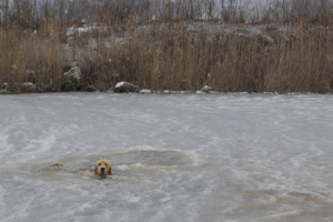 Rescuers Save Dog Who Fell Through Ice-Covered Pond