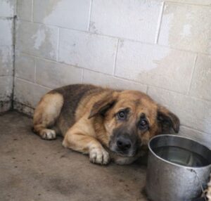 Another dog who seems to know her sad fate is Olivia, a German shepherd mix at the Devore Animal Shelter in San Bernardino, California. Saving Shelter Dogs from Euthanasia says, “Unwanted German Shepherd — but she still looks at every footstep as if it might be the one that saves her. 💔This is Olivia’s last day to live, and she doesn’t know what that means. She only knows she’s alone, pressed against a cold wall, quietly waiting for someone who may never come.”