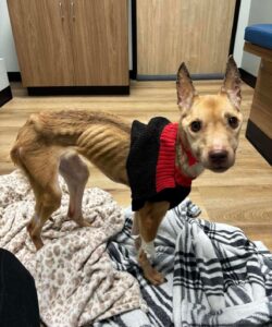 Houston, Texas – A dog’s pitiful condition is so extreme that it is hard to believe she is alive. The dog, Penelope, weighs just 10 pounds. According to Caitie’s Foster Fam Rescue, Penelope was adopted four years ago as a puppy…today she is an emaciated skeleton.