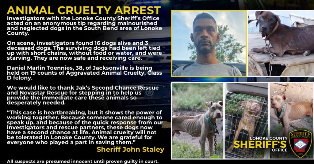 “This case is heartbreaking, but it shows the power of working together. Because someone cared enough to speak up, and because of the quick response from our investigators and rescue partners, these dogs now have a second chance at life. Animal Cruelty will not be tolerated in Lonoke County. We are grateful for everyone who played a part in saving them.”