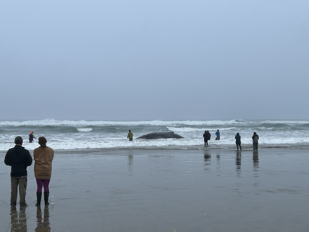 Yachats, Oregon – Plans are in place to euthanize a juvenile humpback whale who is beached on the coast near Yachats. The 26-foot-long yearling beached itself on the evening of November 15 after getting tangled in crabbing gear.