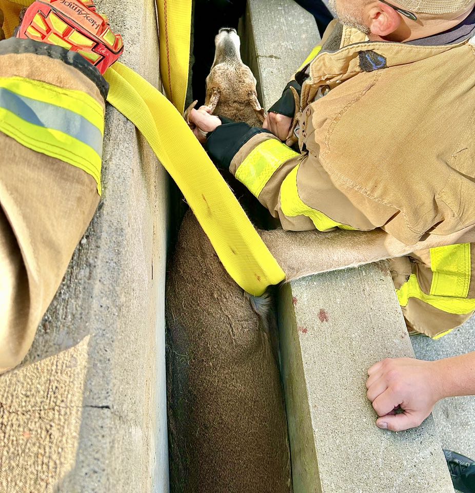 In the midst of a busy day, our search and rescue team responded to a call regarding a deer trapped in cement barricades, facing a fatal outcome without expert extraction.