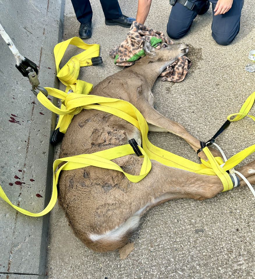 Auburn Hills, Mich. – A deer is alive today thanks to the efforts of the Oakland County Sheriff’s Office and search and rescue team members. The four-point deer was trapped between cement barriers on Interstate 75 after being struck by a vehicle. According to the Sheriff’s Office, a driver reported the life-or-death situation to the Auburn Hills police on the afternoon of October 13.