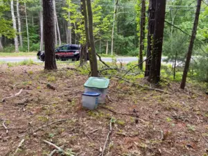 Walker Finds Pregnant Cat Abandoned In Plastic Container Left In The Woods