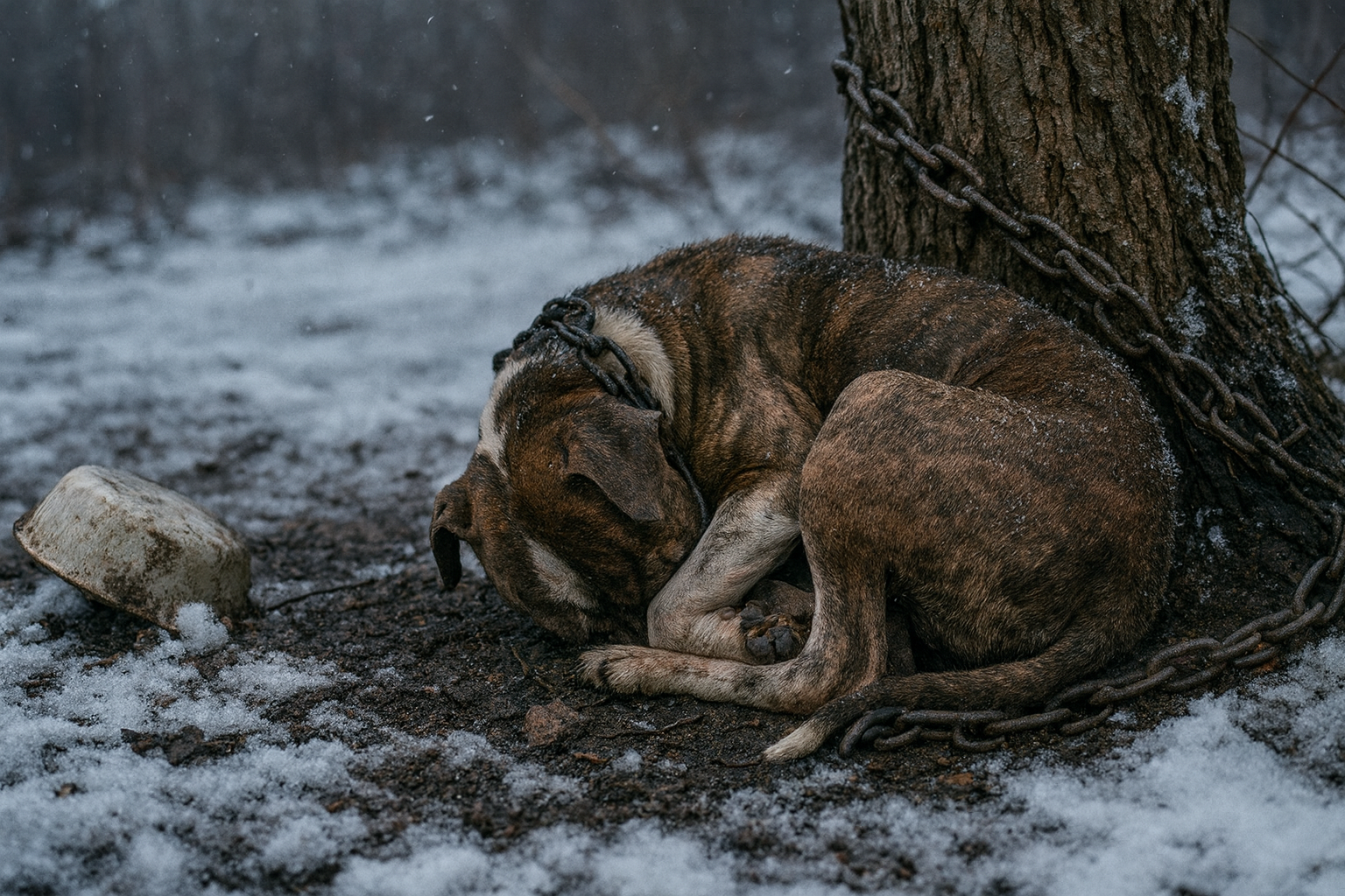 Mason County, West Virginia – The discovery of a dog, suffering in frigid temperatures and chained to a tree, unable to escape, led to charges against a West Virginia woman. According to sources, police arrested Katrina Winona O’Connell, 42, after a dog was found suffering outside a Hannan Trace Road home when the temperature was near zero degrees.